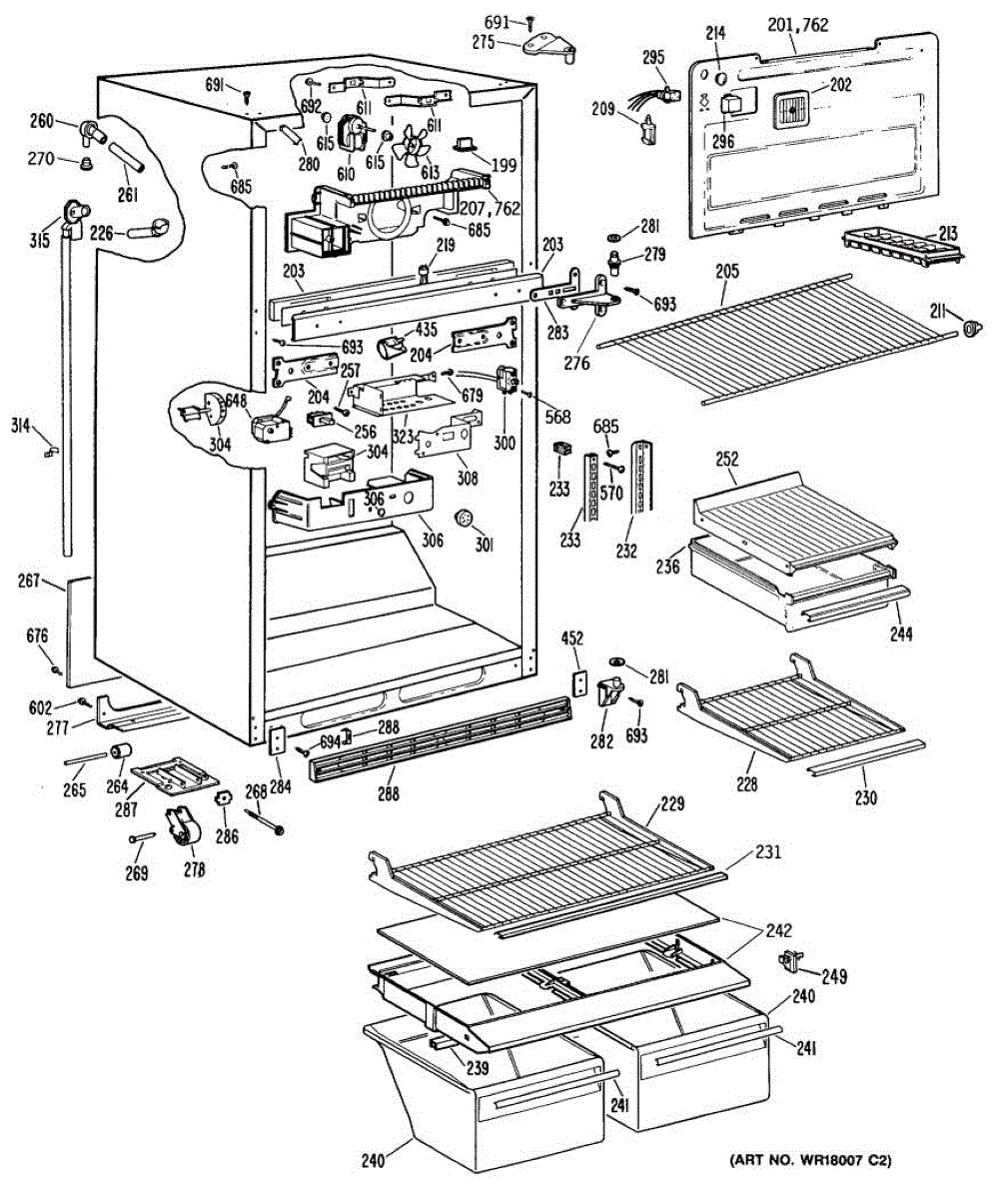 Parts for Ge TBX21DRBRAD: 02 - Section2 Parts