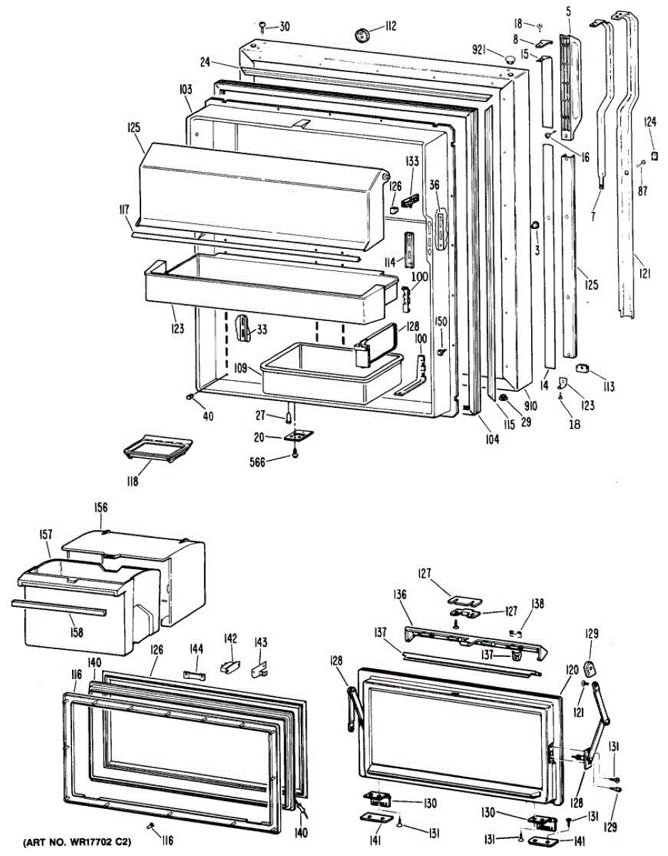 Hardware fasteners for securing refrigerator door panels and components. Includes screws, nuts, and washers for assembly. Replace missing or stripped pieces.