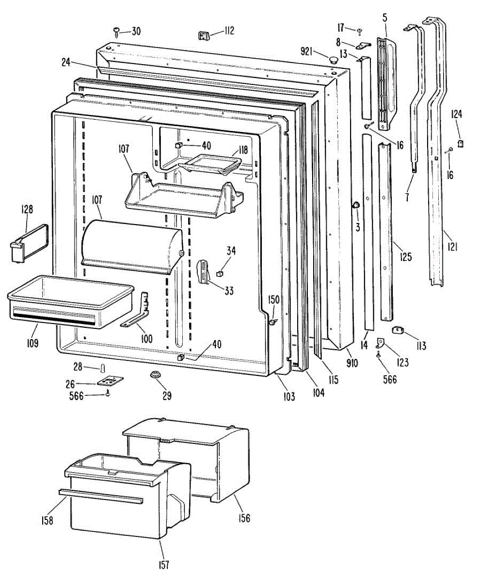 Hardware fasteners for securing refrigerator door panels and components. Includes screws, nuts, and washers for assembly. Replace missing or stripped pieces.