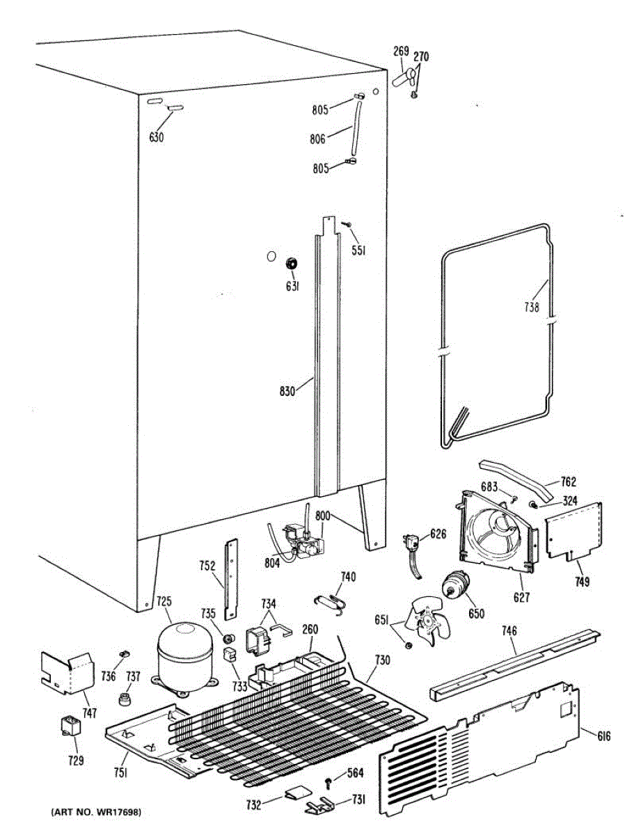 Supplies electrical power from wall outlet to refrigerator. Replace this cord if cut, frayed, overheated, or damaged to restore safe electrical connection.