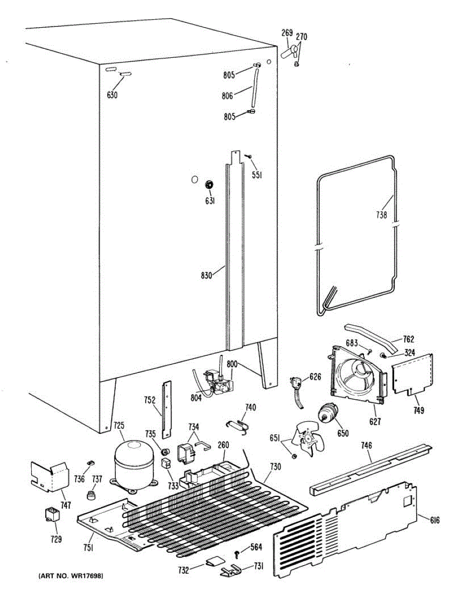 Supplies electrical power from wall outlet to refrigerator. Replace this cord if cut, frayed, overheated, or damaged to restore safe electrical connection.