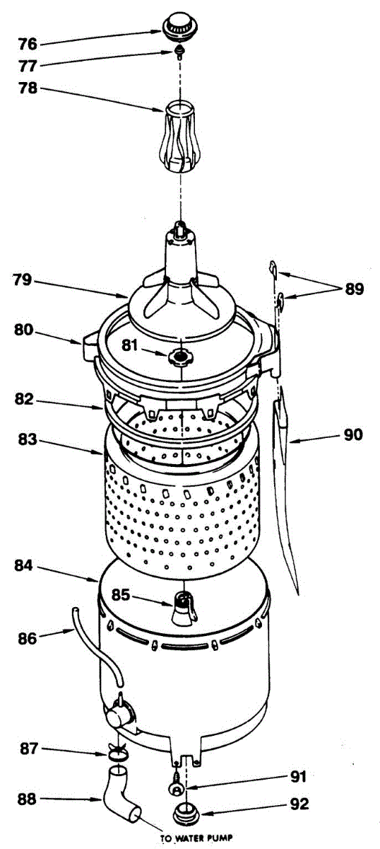 Replacement washer basket that holds clothing during wash and spin cycles. Needed when the original basket is cracked, damaged, or has broken fins.