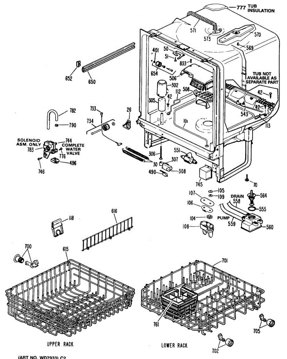 Replaces broken or cracked 3rd level spray arm assembly that mounts at the top of the tub. Includes mounting tabs and collar for secure installation.