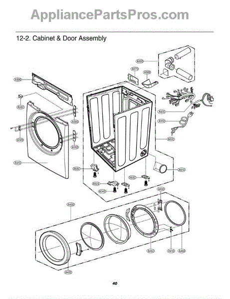 Replacement outer door frame that surrounds the dryer's front door. Restores secure fit and finished look when original is cracked, dented, or worn.