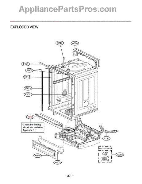 The Drain Hose Assembly is an OEM part for LG dishwashers. This crucial component ensures the effective expulsion of used water from the dishwasher to the home's drainage system.