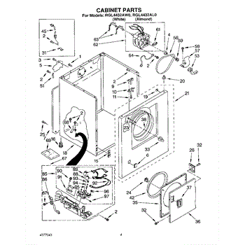 Fits all Whirlpool-made dryers (Whirlpool, Kenmore with prefix 110, Roper, KitchenAid, and Estate). Matching belt 341241 and rear support rollers 349241T. Whirlpool dryer repair manual 677818L.