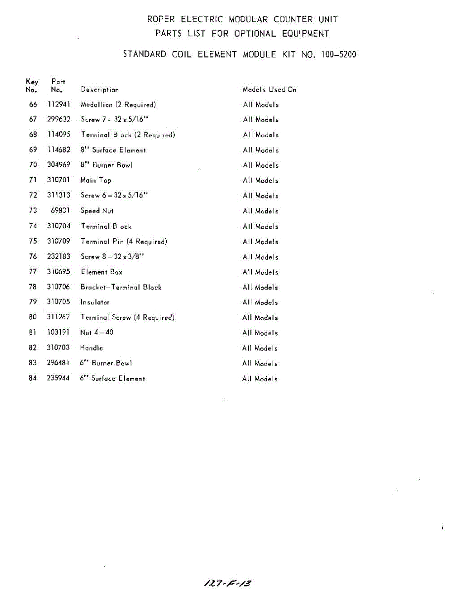 Parts for 1005200