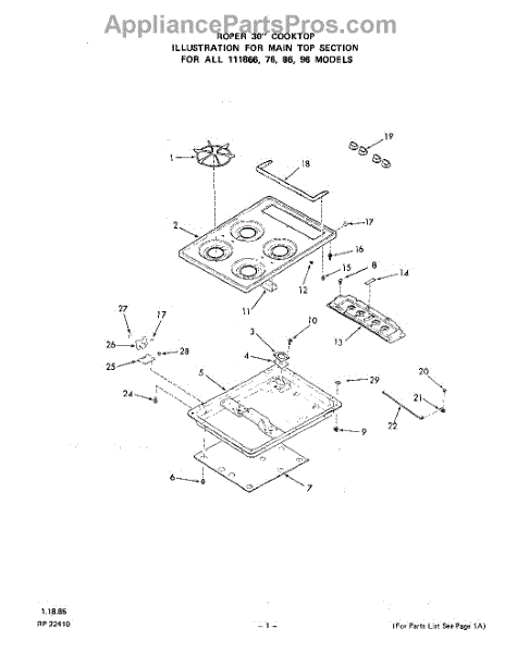 Whirlpool Cooktop Parts