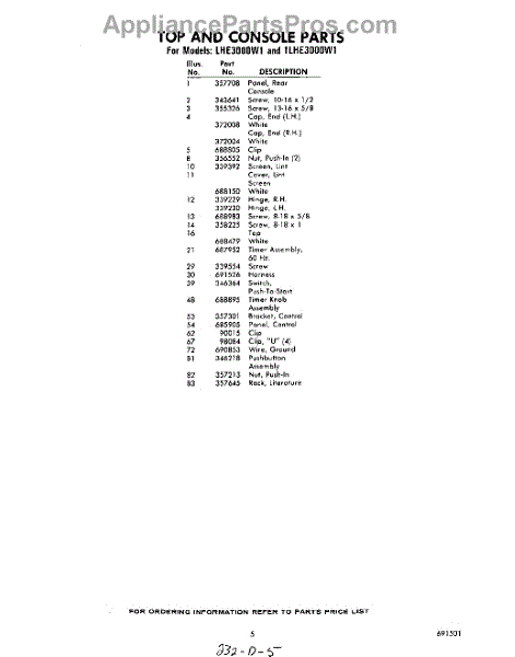 Parts for Whirlpool 1LHE3000W1: 05 - Section Parts