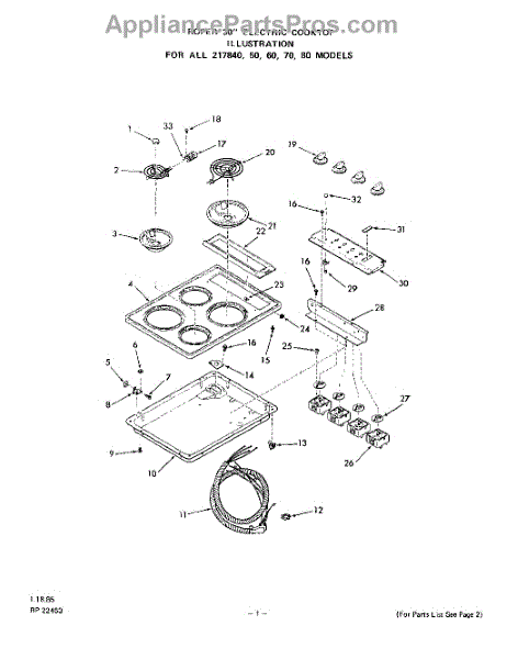 Whirlpool Cooktop Parts