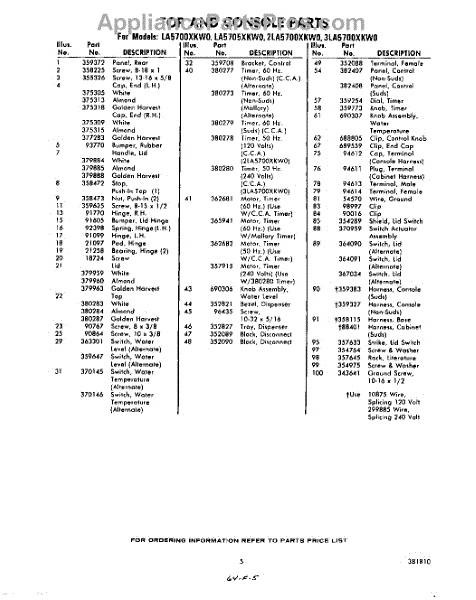 Parts for Whirlpool 2LA5700XKW0: 05 - Section Parts