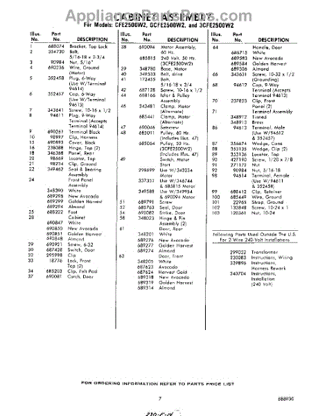 Parts for 3CFE2500W2