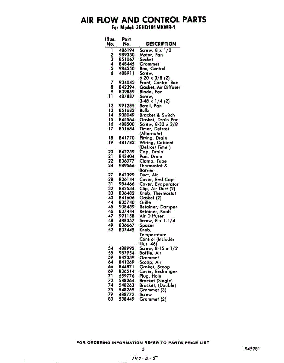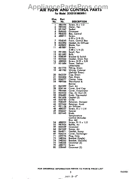Parts for Whirlpool 3EHD191MKWR1: 05 - Section Parts
