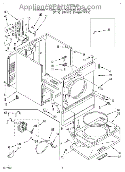Fits all Whirlpool-made dryers (Whirlpool, Kenmore with prefix 110, Roper, KitchenAid, and Estate). Matching belt 341241 and rear support rollers 349241T. Whirlpool dryer repair manual 677818L.