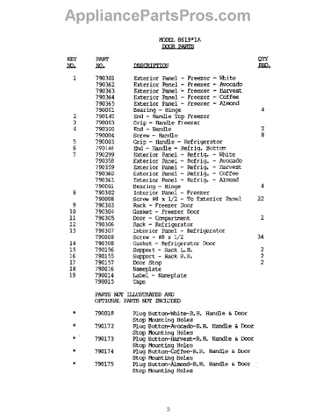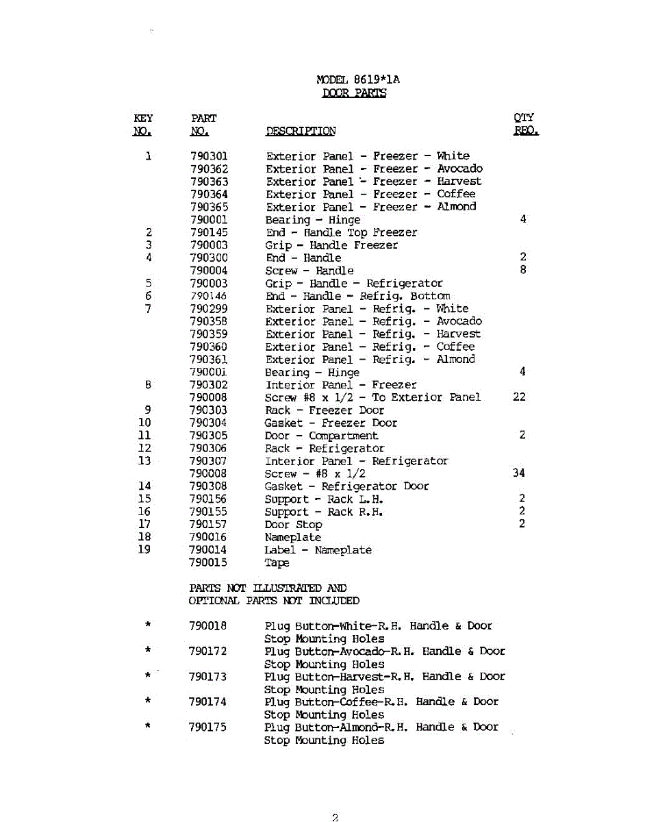 Parts for 8619W1A