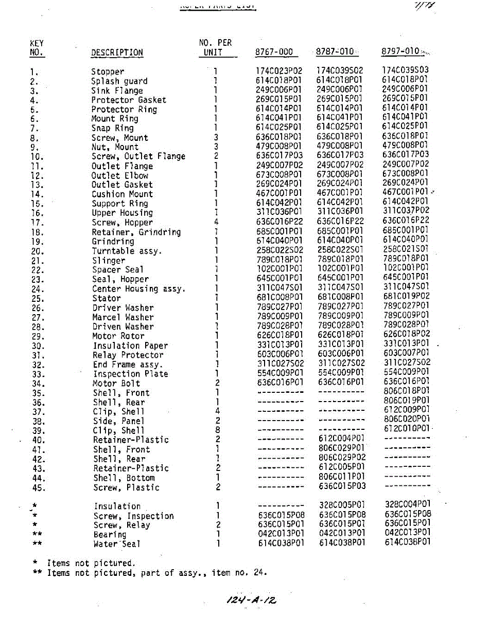 Parts for 8787010