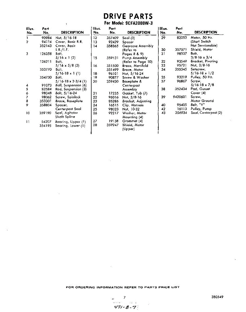 Parts for Whirlpool 9CFA2000W3: 07 - Section Parts
