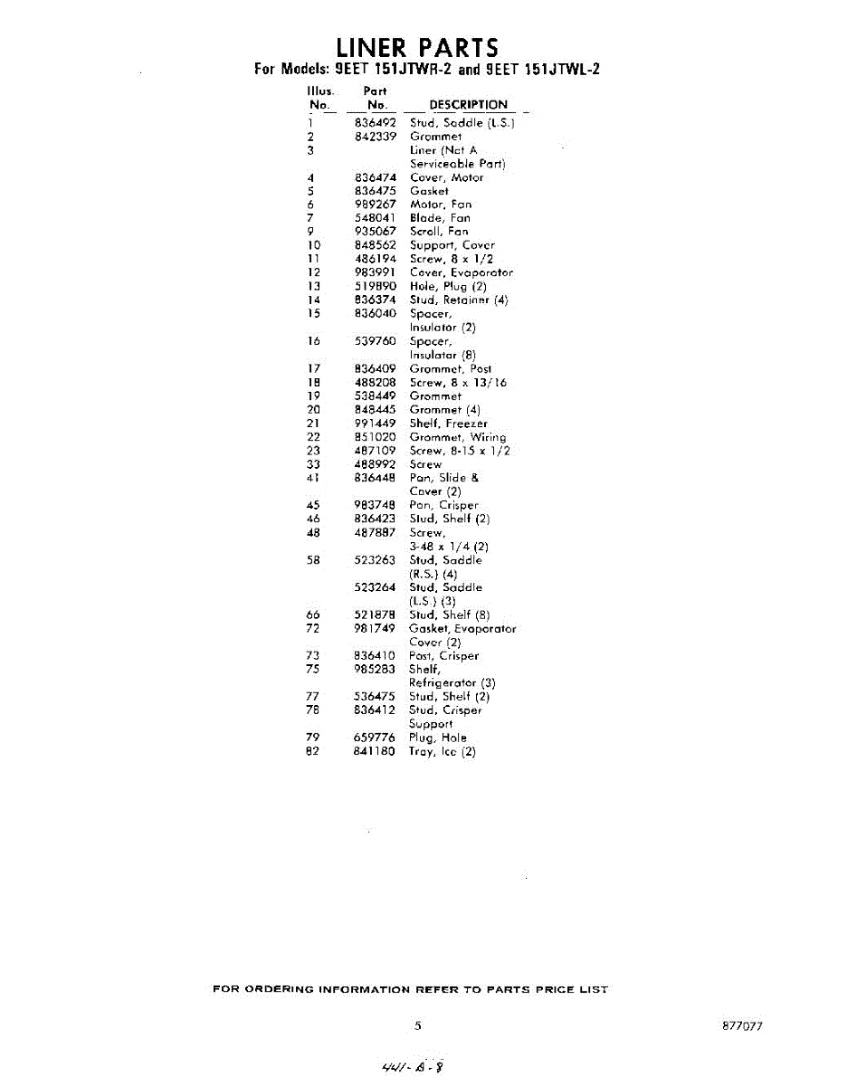 Parts for Whirlpool 9EET151JTWL2: 05 - Section Parts