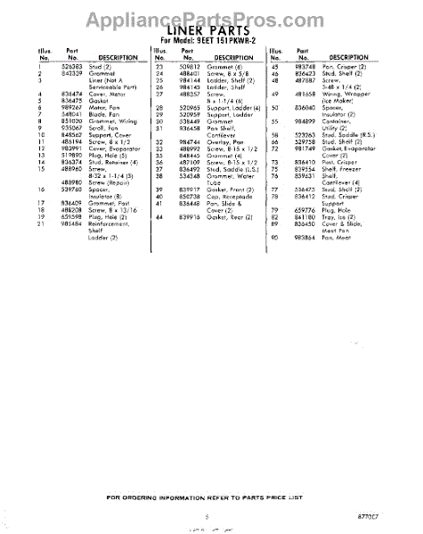 Parts for 9EET151PKWR2