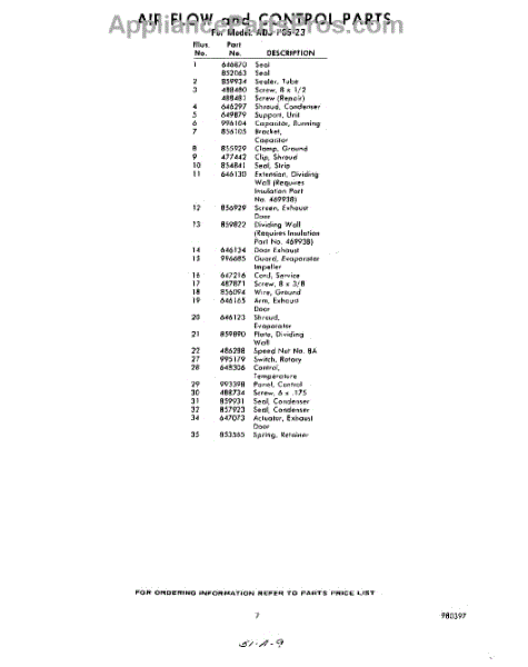 Parts for Whirlpool ADJP0523: 07 - Section Parts