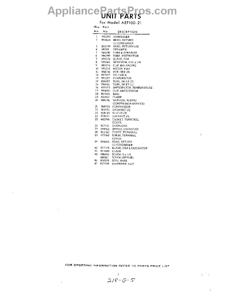 Parts for Whirlpool AEF10021: 05 - Section Parts