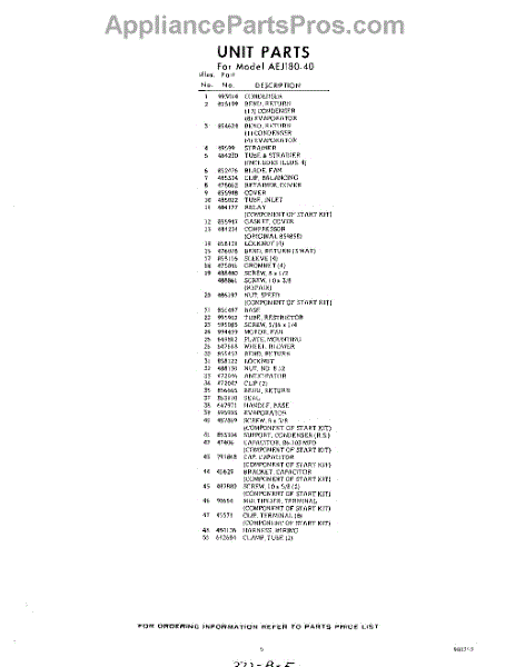 Parts for Whirlpool AEJ18040: 05 - Section Parts