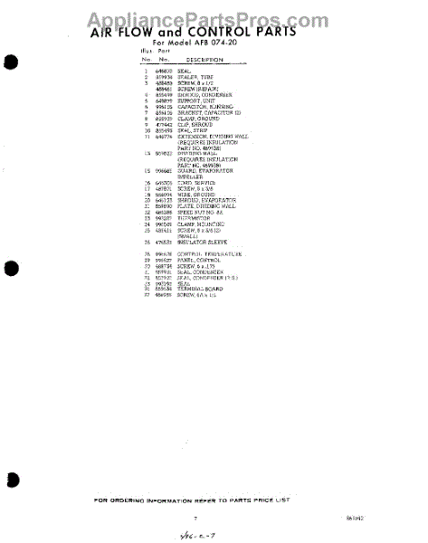 Parts for Whirlpool AFB07420: 07 - Section Parts