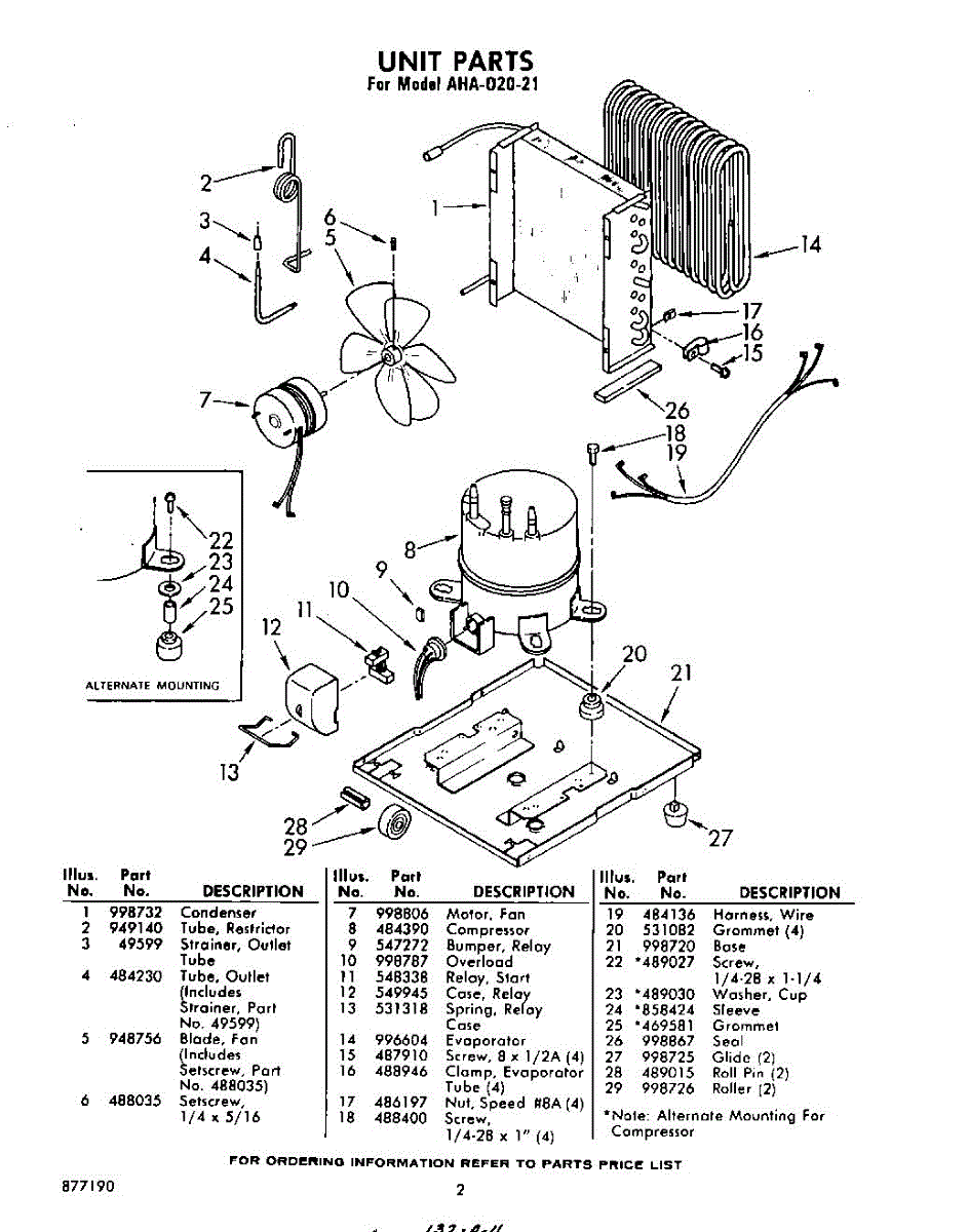 Parts for Whirlpool AHA02021: 02 - Section Parts
