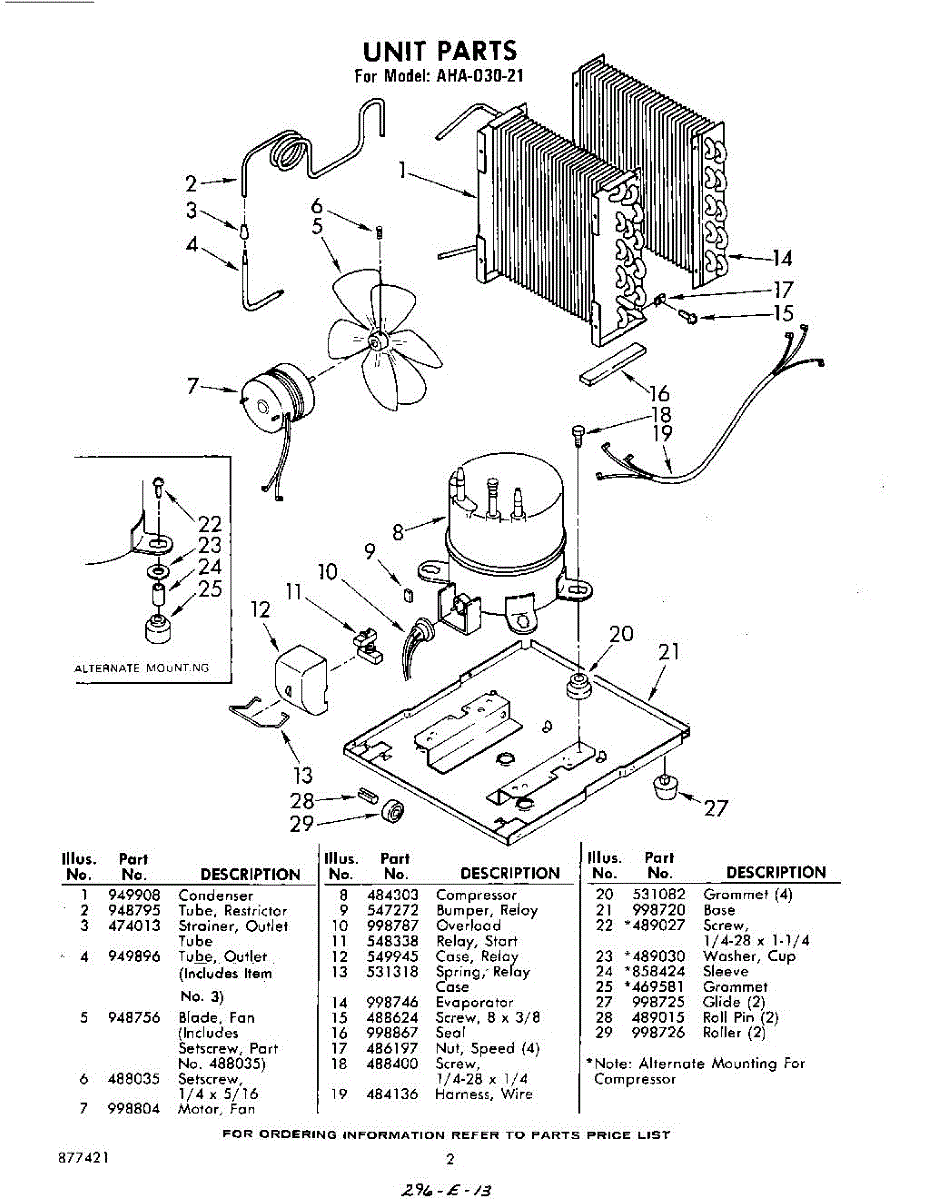 Parts for Whirlpool AHA03021: 02 - Section Parts
