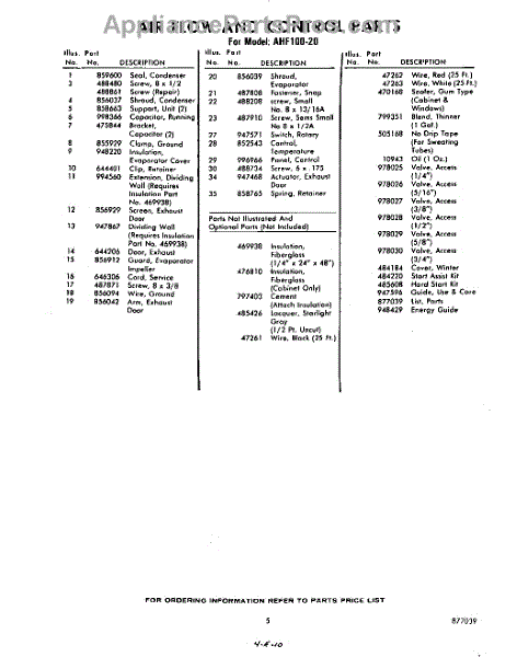 Parts for Whirlpool AHF10020: 05 - Section Parts