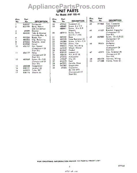 Parts for Whirlpool AHF18541: 05 - Section Parts