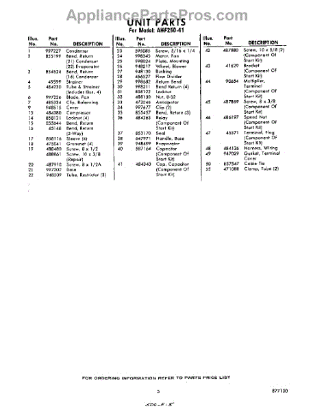 Parts for Whirlpool AHF25041: 05 - Section Parts