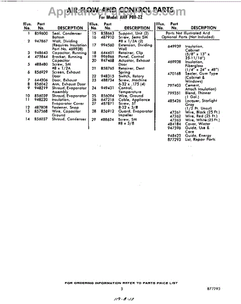 Parts for Whirlpool AHFP8022: 05 - Section Parts