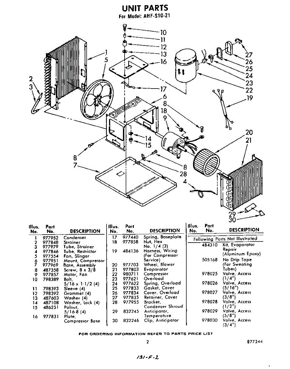 Parts for Whirlpool AHFS1021: 02 - Section Parts