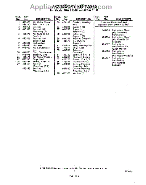 Parts for Whirlpool AHFW1141: 07 - Section Parts