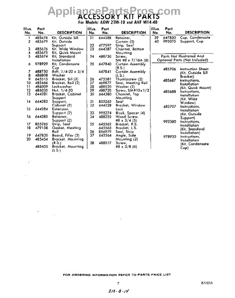 Parts for AHFW1440
