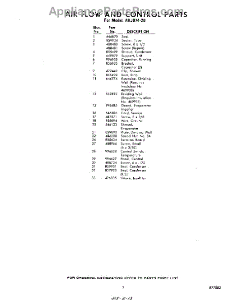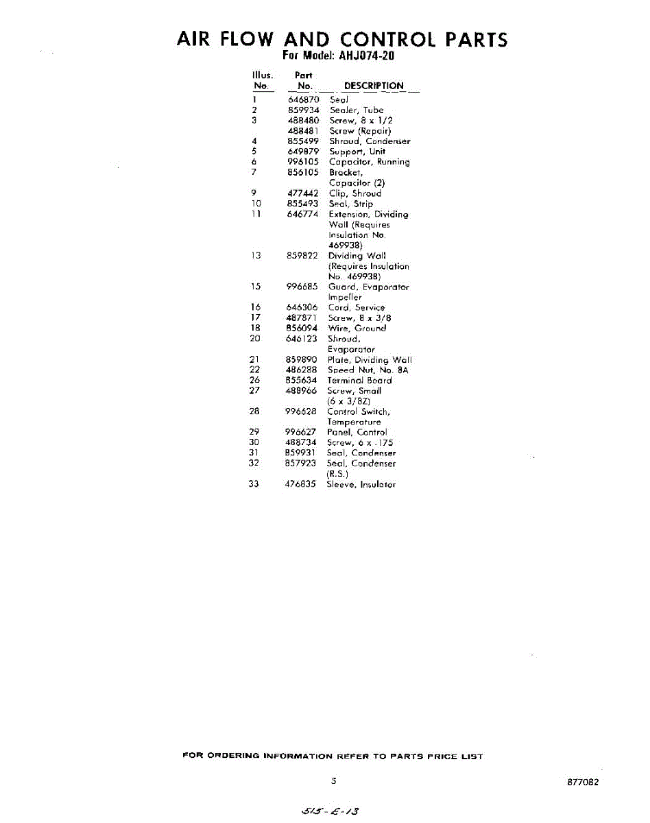 Parts for Whirlpool AHJ07420: 05 - Section Parts