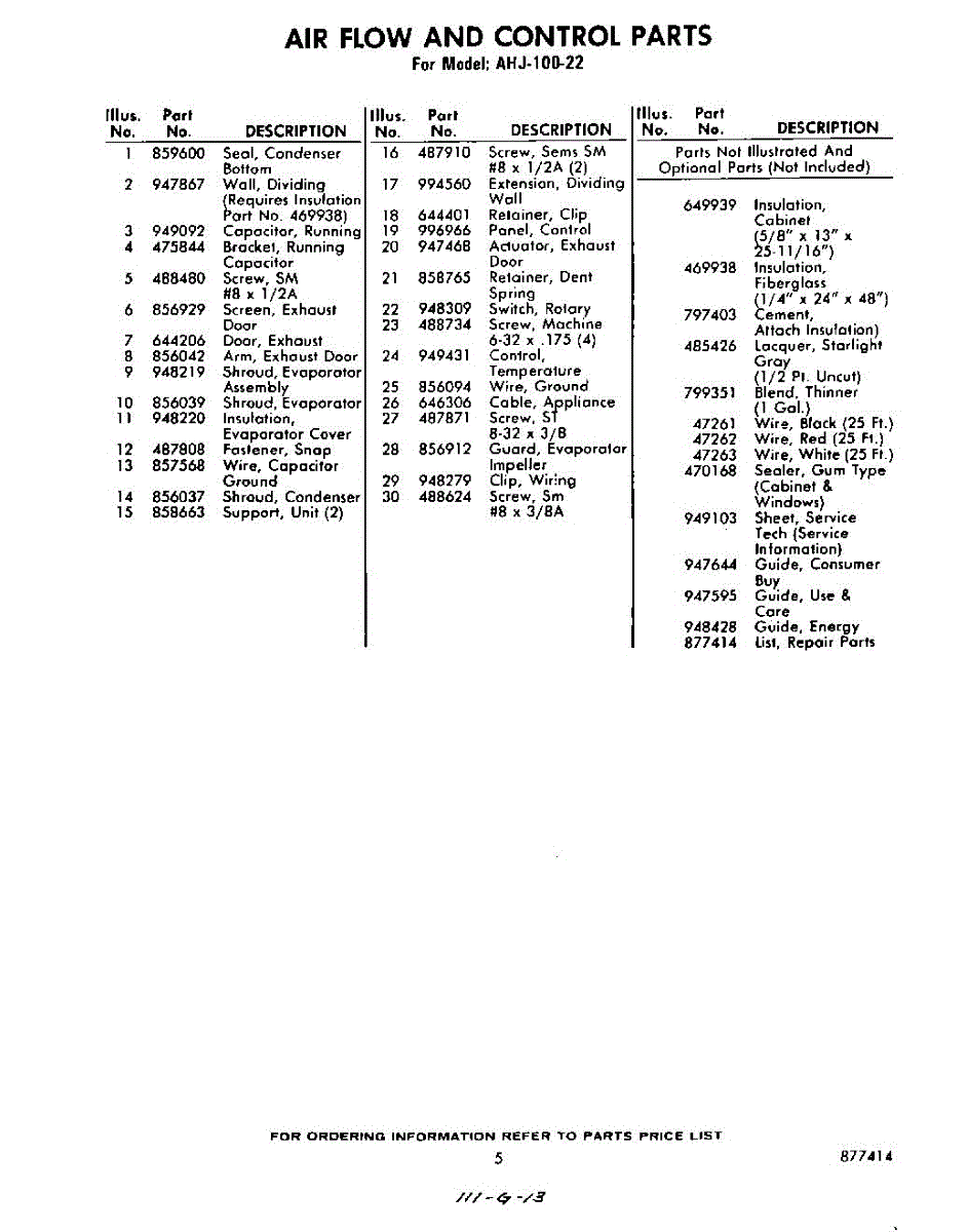 Parts for Whirlpool AHJ10022: 05 - Section Parts