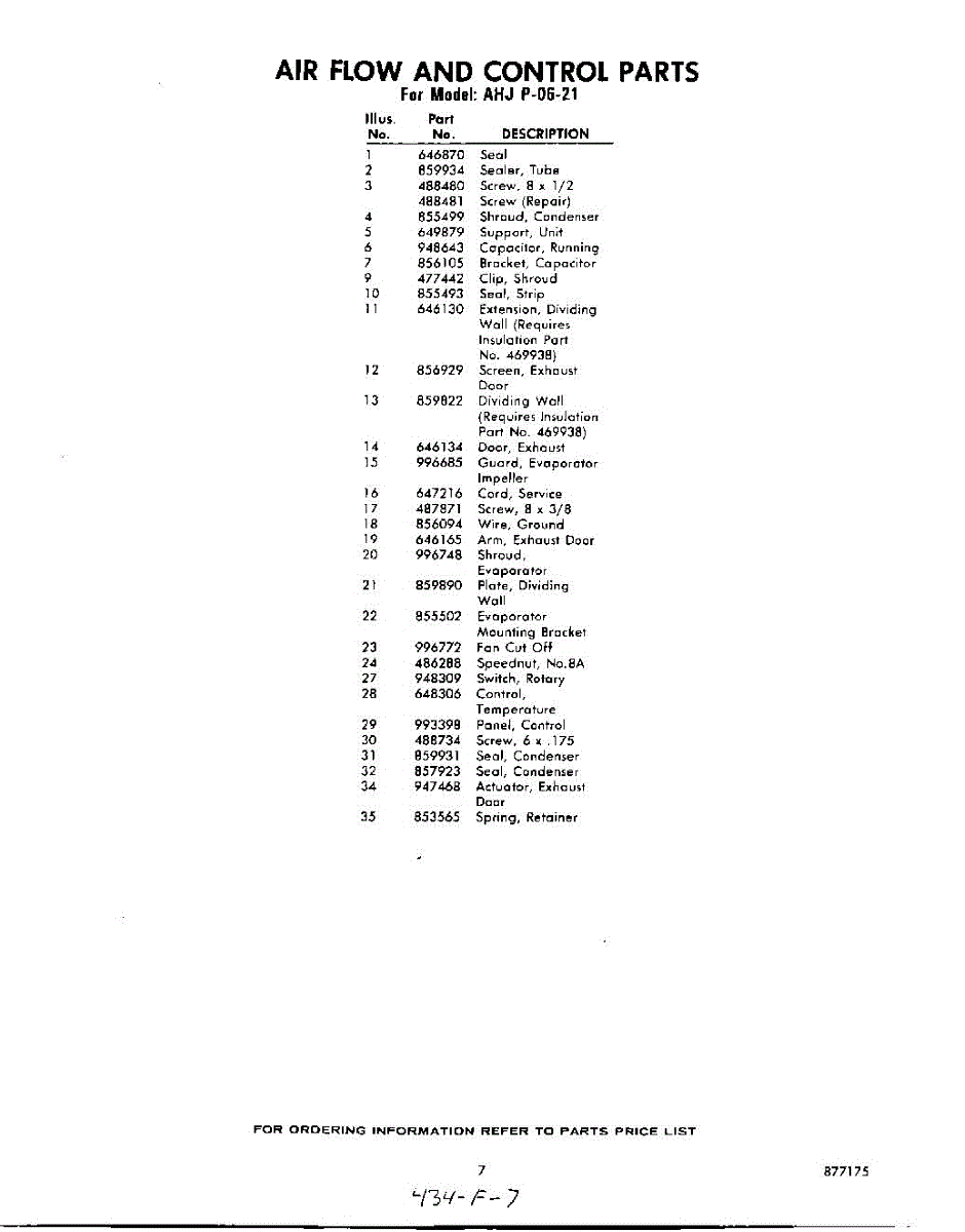 Parts for Whirlpool AHJP0621: 07 - Section Parts