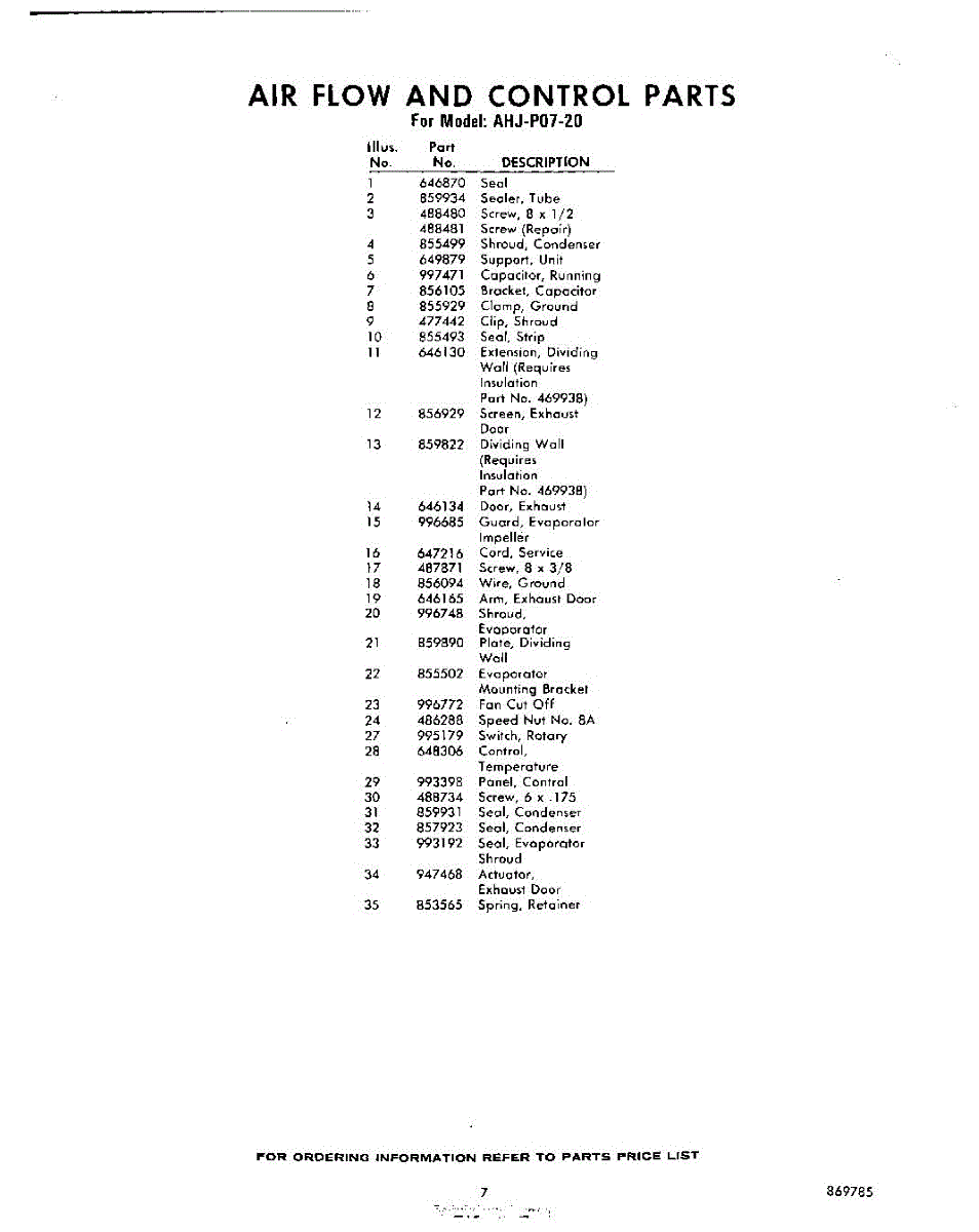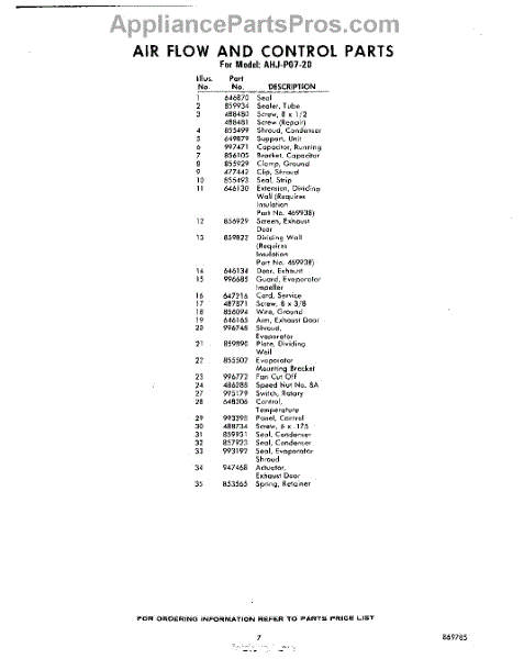 Parts for Whirlpool AHJP0720: 07 - Section Parts