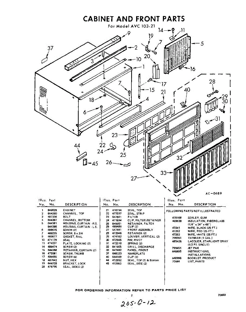 Parts for Whirlpool AVC10321: 02 - Section Parts
