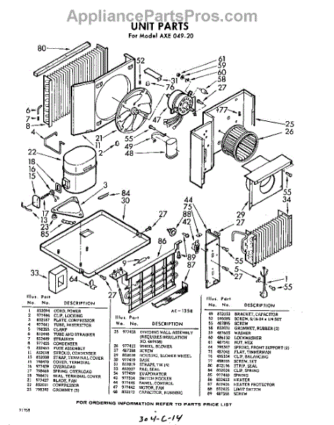 Parts for Whirlpool AXE04920: 02 - Section Parts