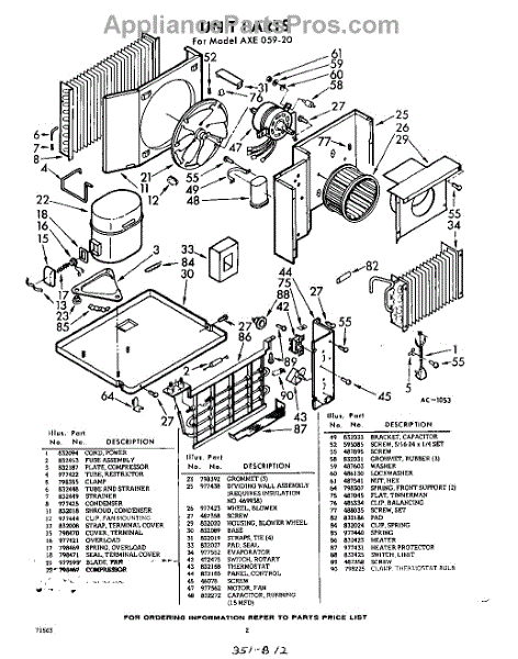 Parts for Whirlpool AXE05920: 02 - Section Parts