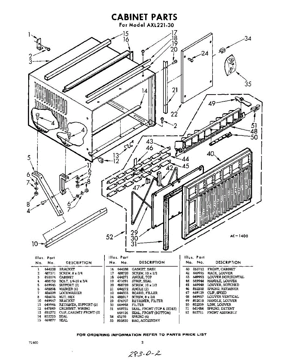 Parts for Whirlpool AXL22130: 02 - Section Parts