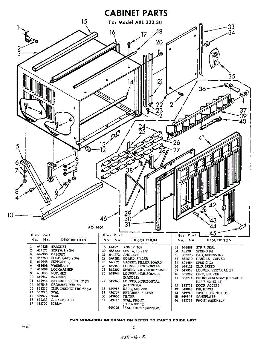 Parts for Whirlpool AXL22230: 02 - Section Parts