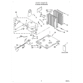 This screw is used to secure the handle end cap to the center of the door. The screw size measures 8-18 x 1/2 inches.