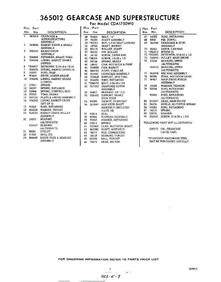 Parts for Whirlpool CDA1750W0: 07 - Section Parts