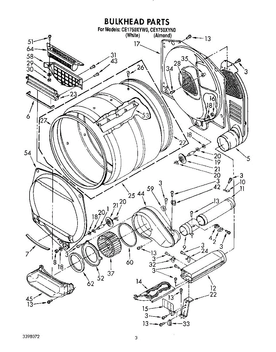 Replacement dryer drum front bulkhead panel. Installs at the front of the drum assembly. Needed when cracked, warped, or damaged from wear.