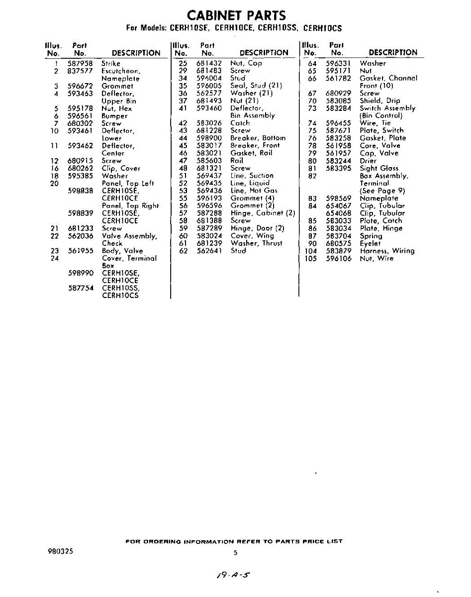Parts for Whirlpool CERH10SS: 05 - Section Parts