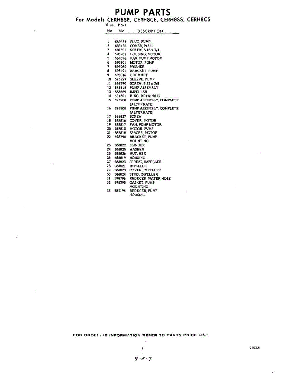 Parts for CERH8CS